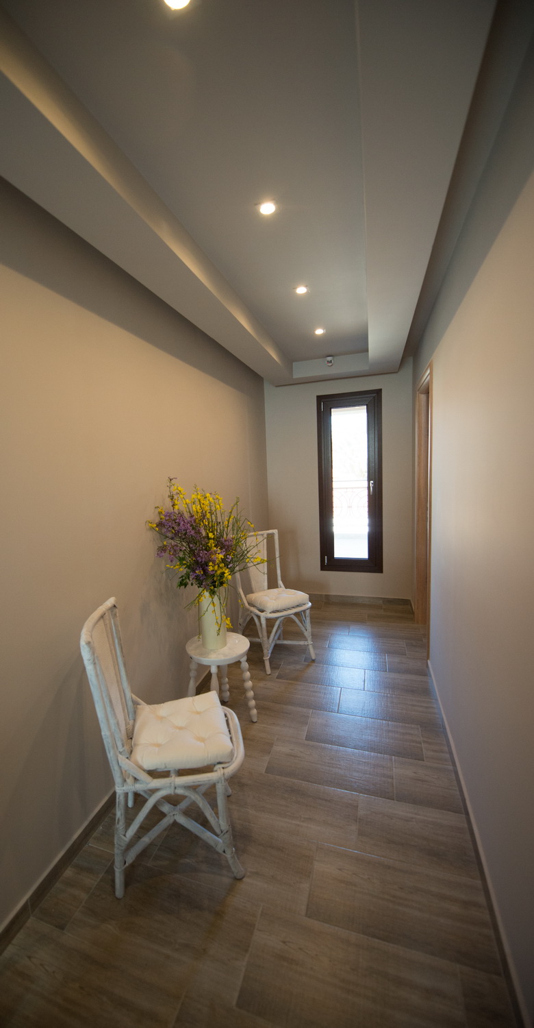 Τα πέντε δωμάτιά μας και οι υπόλοιποι χώροι, με πανοραμική θέα την θάλασσα και την αγιορείτικη κοινότητα, «λούζονται» από το φως, τα χρώματα και την αύρα του Αιγαίου, ενώ η διακόσμηση, η άνεση και οι παροχές, δημιουργούν γαλήνια και φιλική ατμόσφαιρα.